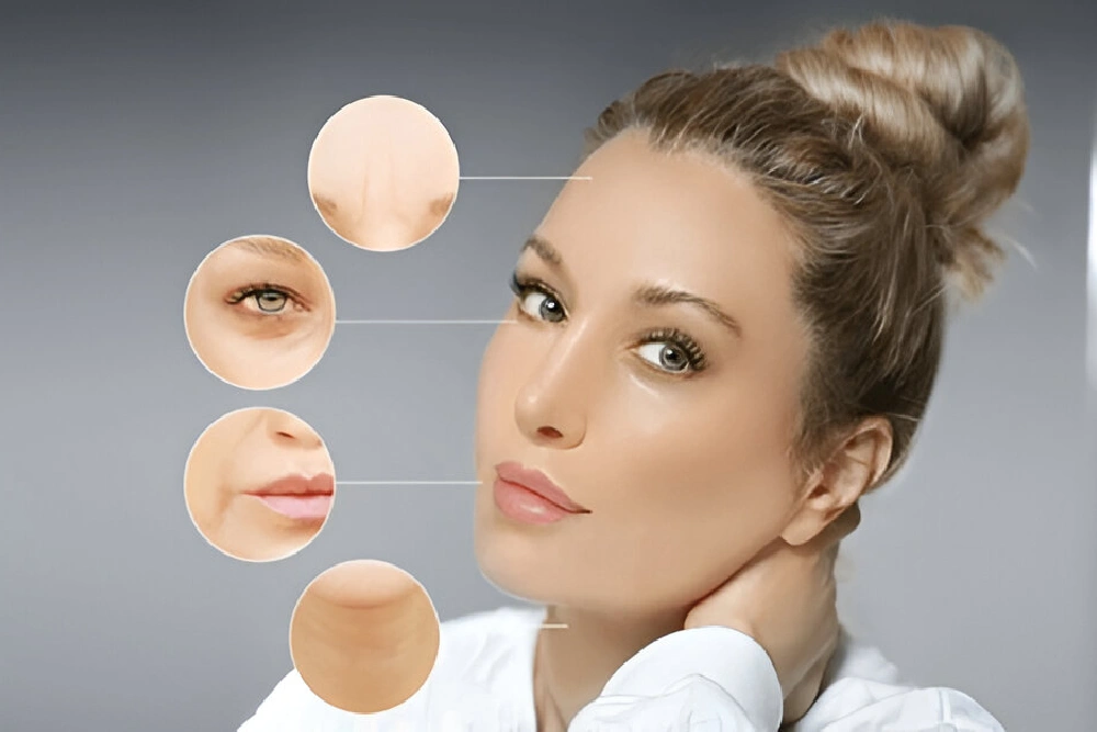 Fillers- They are used on the cheeks, lips, jawline, under the eyes, and hands to restore lost volume.